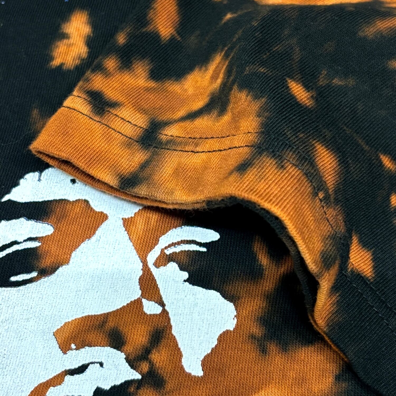 一枚一枚丁寧に施されたブリーチ加工とハンドプリント技術が光る逸品です。