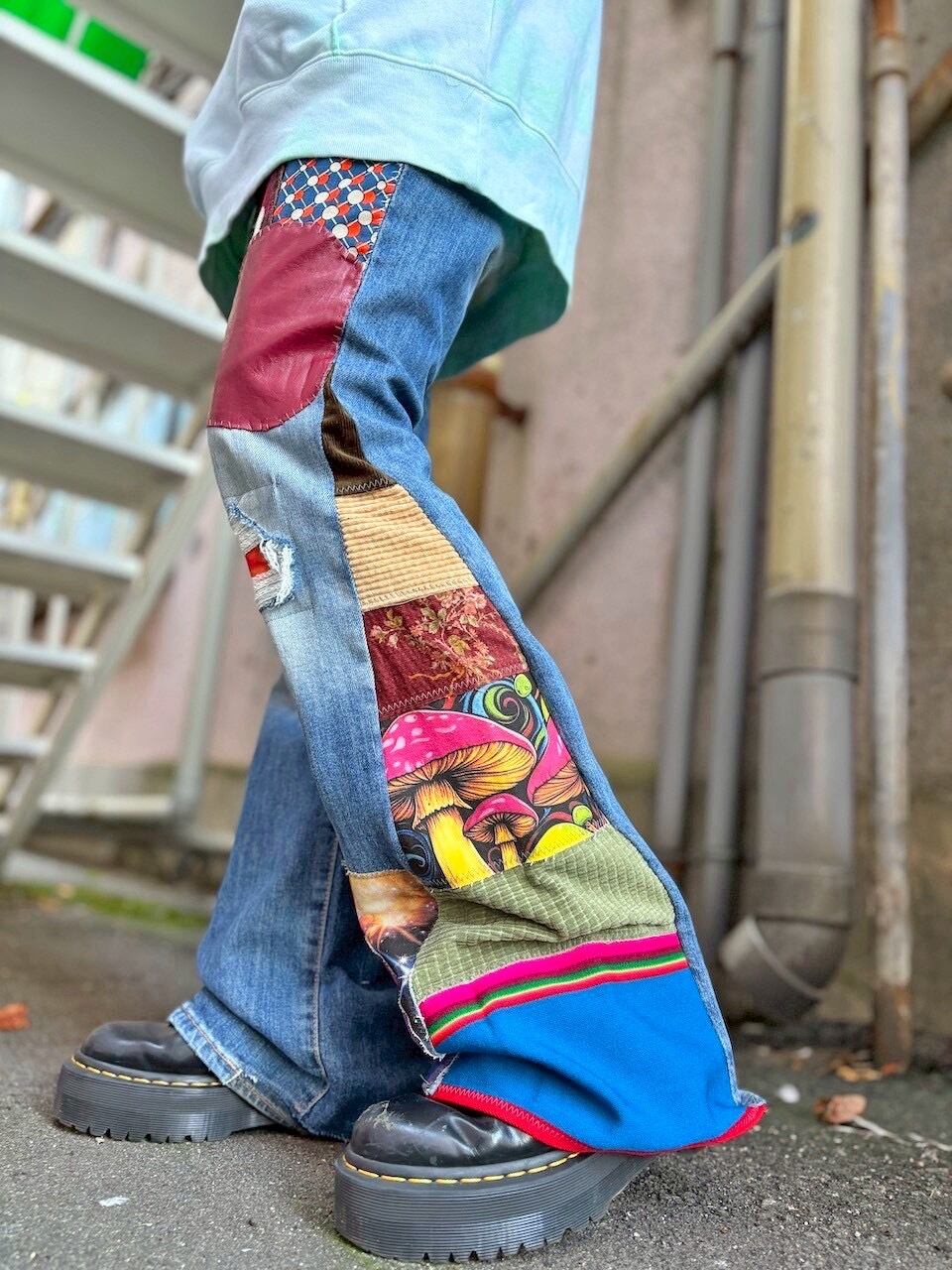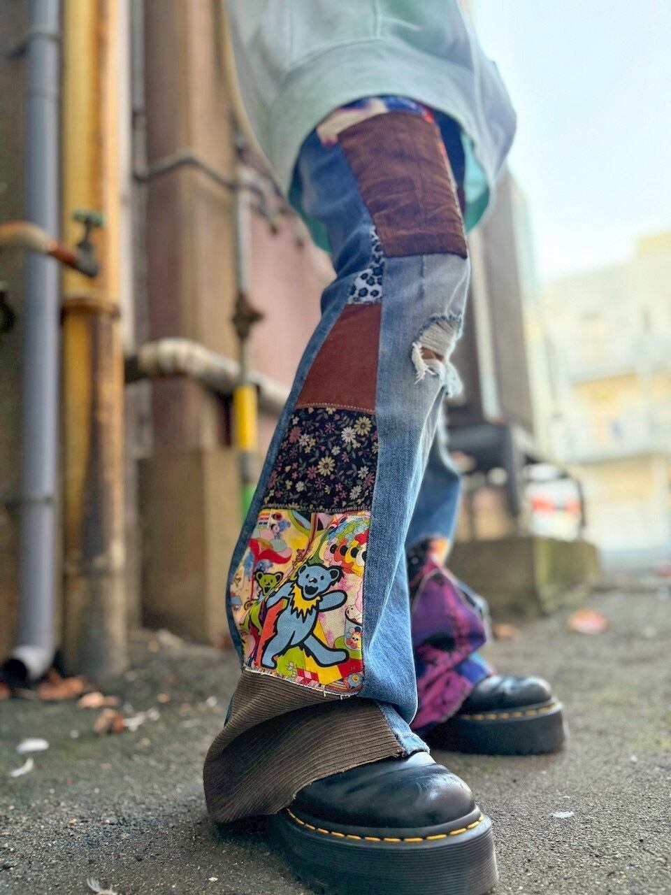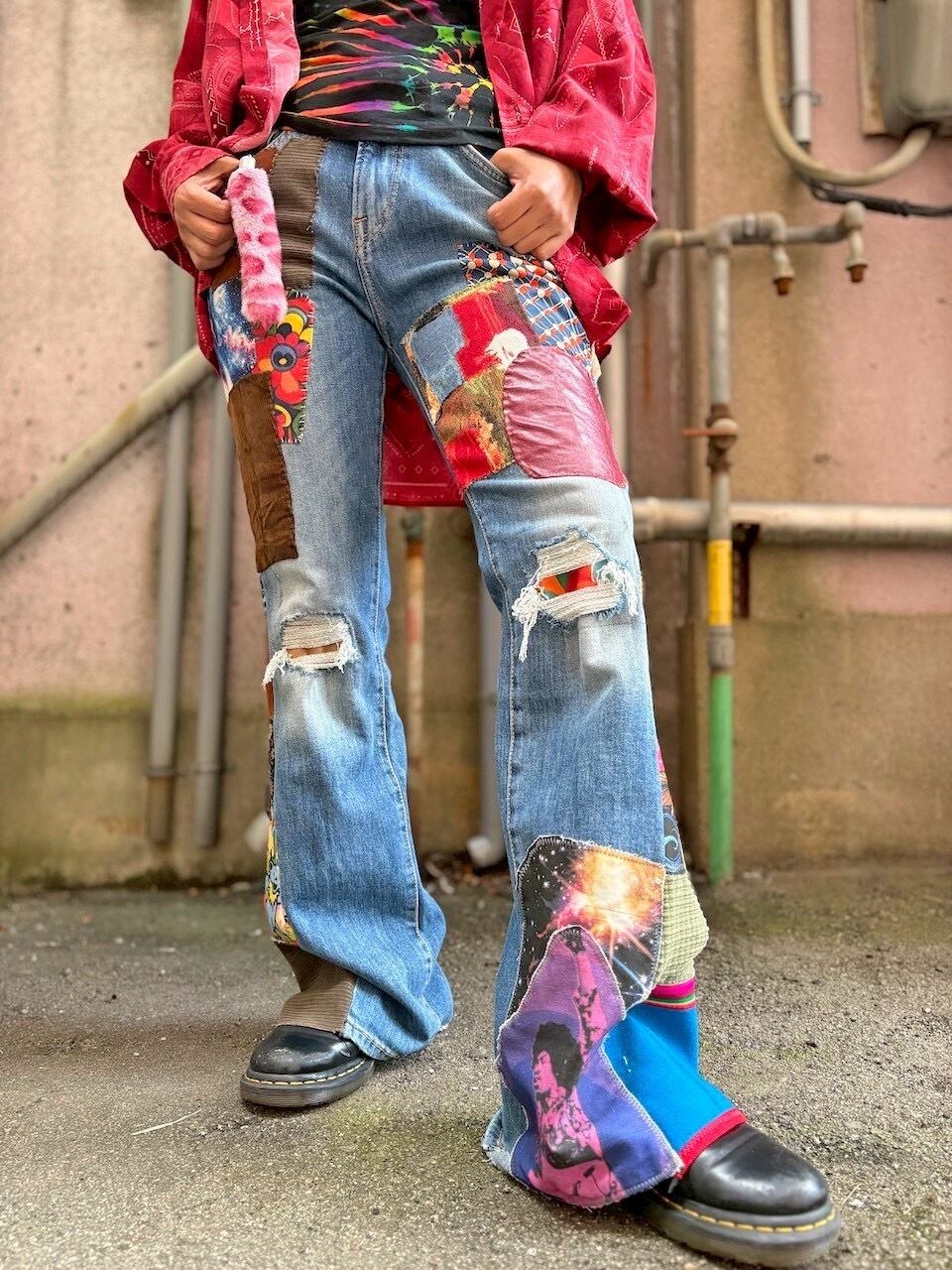 個性あふれる生地を組み合わせた、世界に一本だけのリメイクデニム。