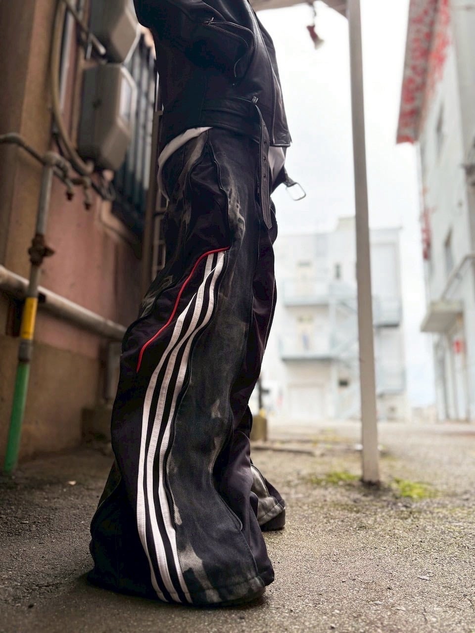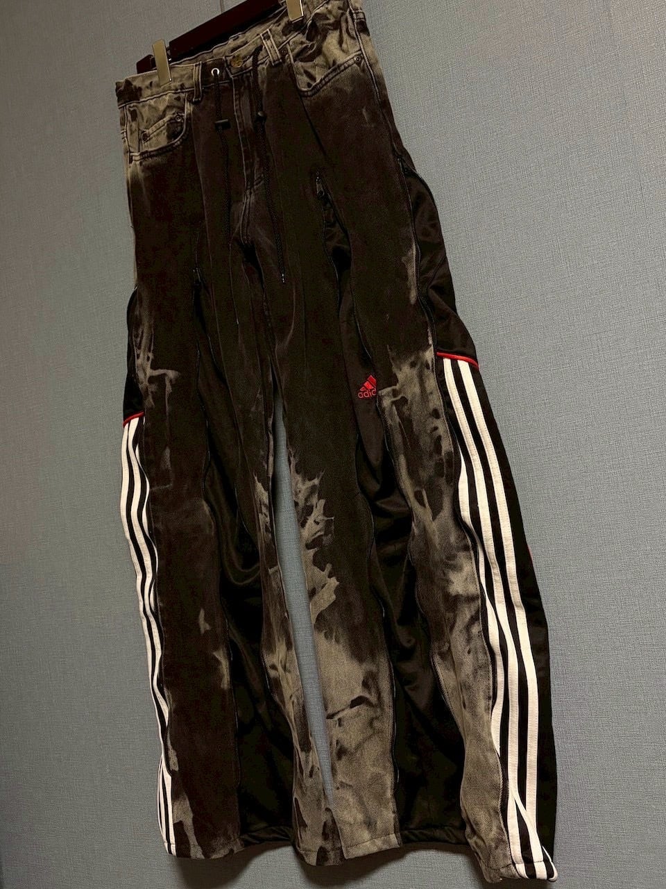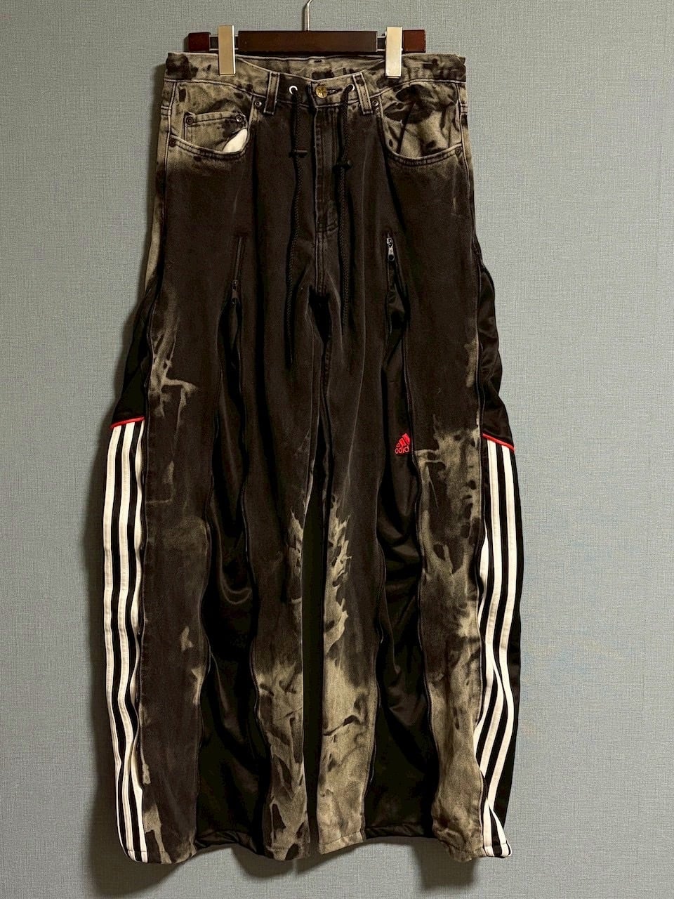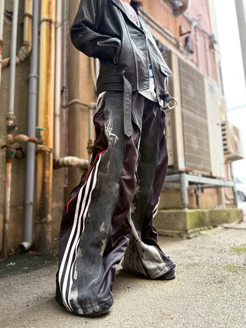 ジャージ素材を大胆に組み合わせたリメイクデニム。