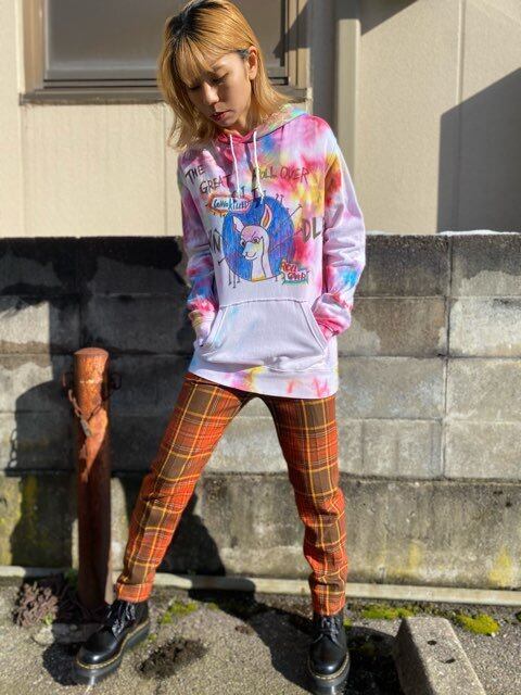 着こなしやすく着心地も良い、絞り染め、手絞り染めで彩った上に、インディーズポップアート界で海外でも高い評価を得るmiharu-chanとコラボレーション。