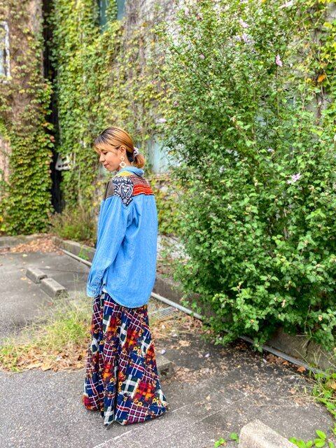古着のデニムシャツをヒッピーテイストにリメイクしました♪