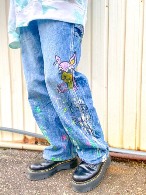 ペイントデニムパンツ Miharu-Chan×ROLL OVER ”Sweet Emotion"