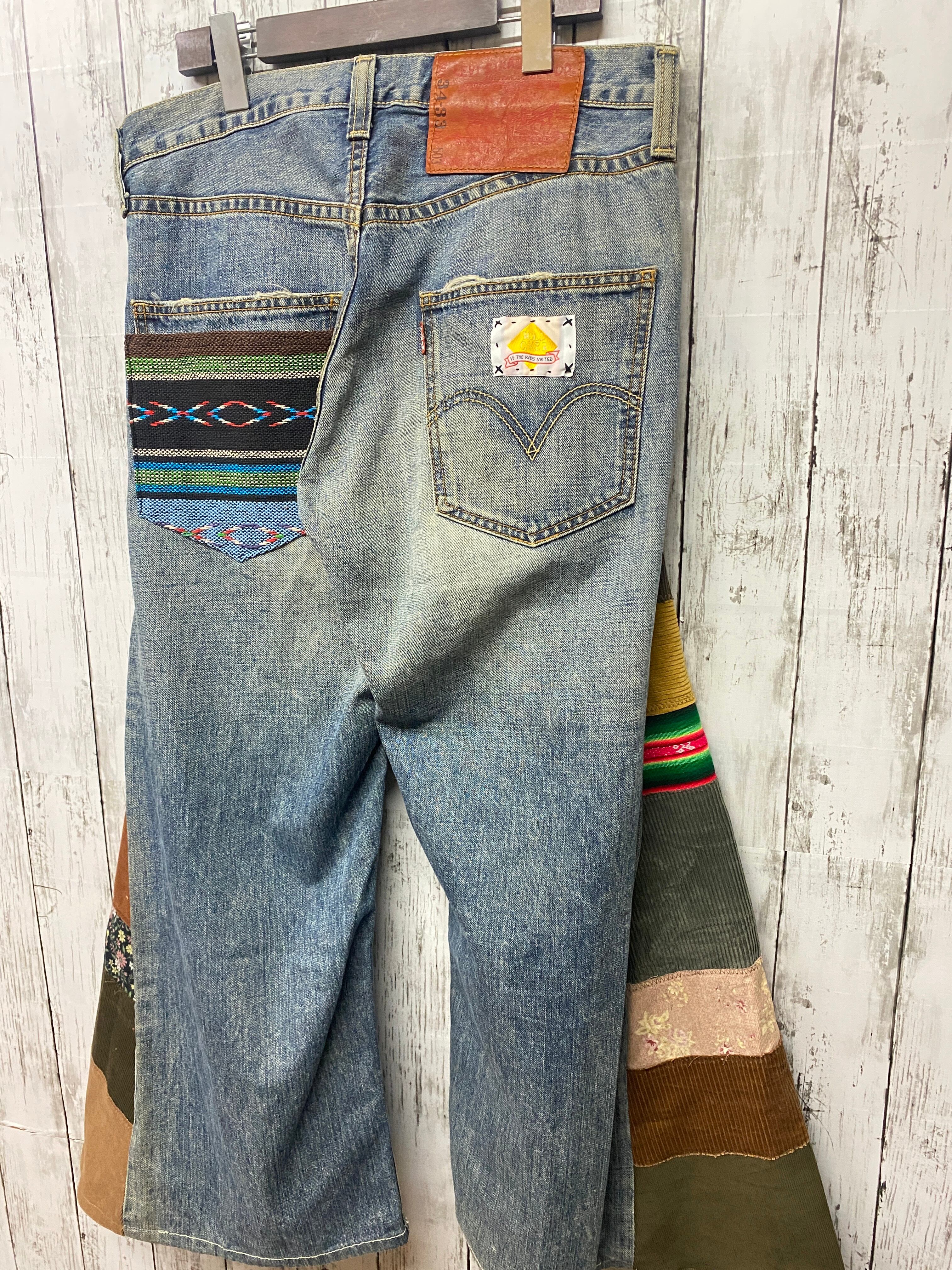 古着デニムパンツをヒッピーテイストにリメイクしました